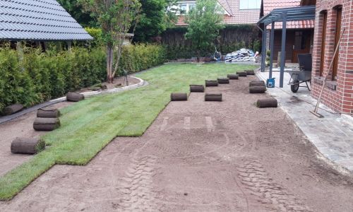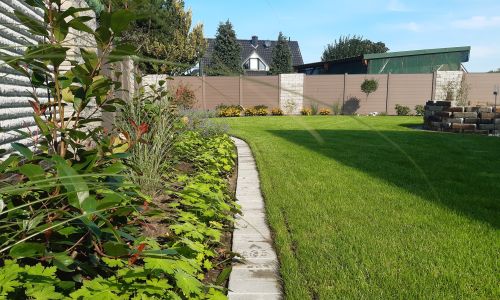 Verschönert: Wir machen’s Ihnen grün – mit hochwertigem Rollrasen oder einer professionellen Ansaat. Natürlich unterstützen wir Sie auch in der Vorbereitung des Erdreichs und der anschließenden Rasenpflege.